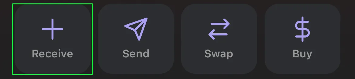 Once you have purchased Solana tokens, send them to your Phantom wallet using the **receive** button. Make sure you have enough $SOL to cover the transaction fees.